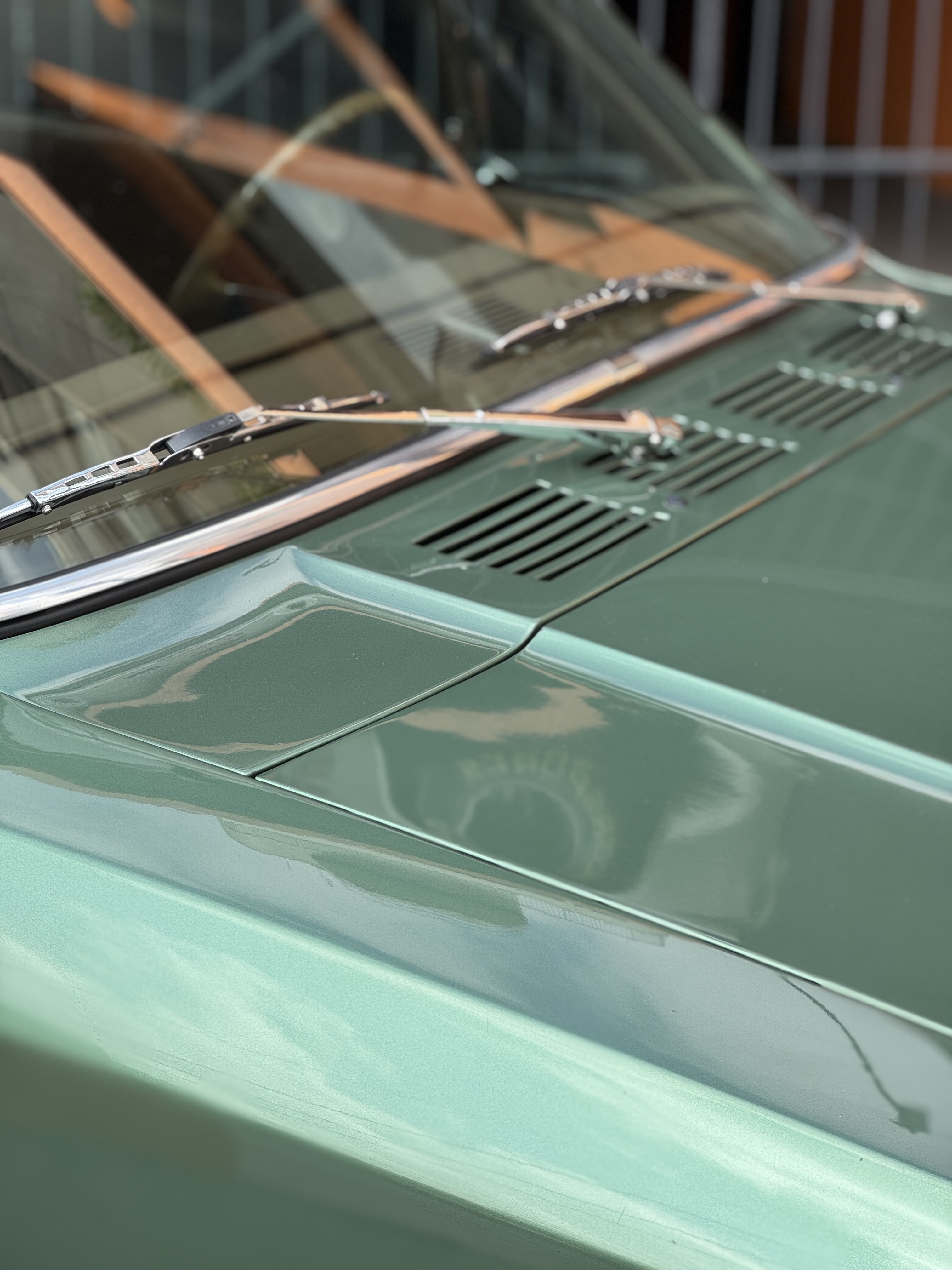 -Vidros verdes com pára-brisa degradê.