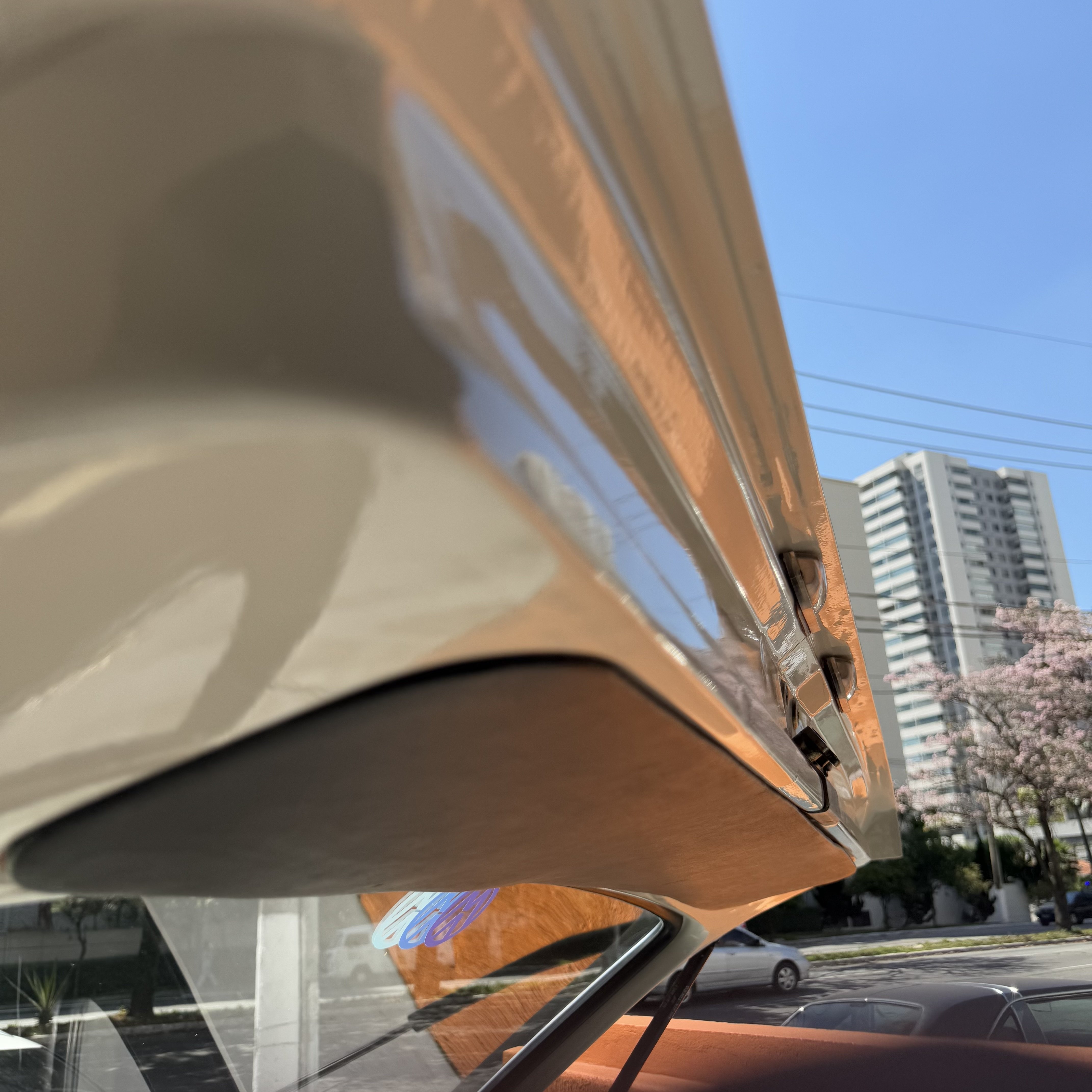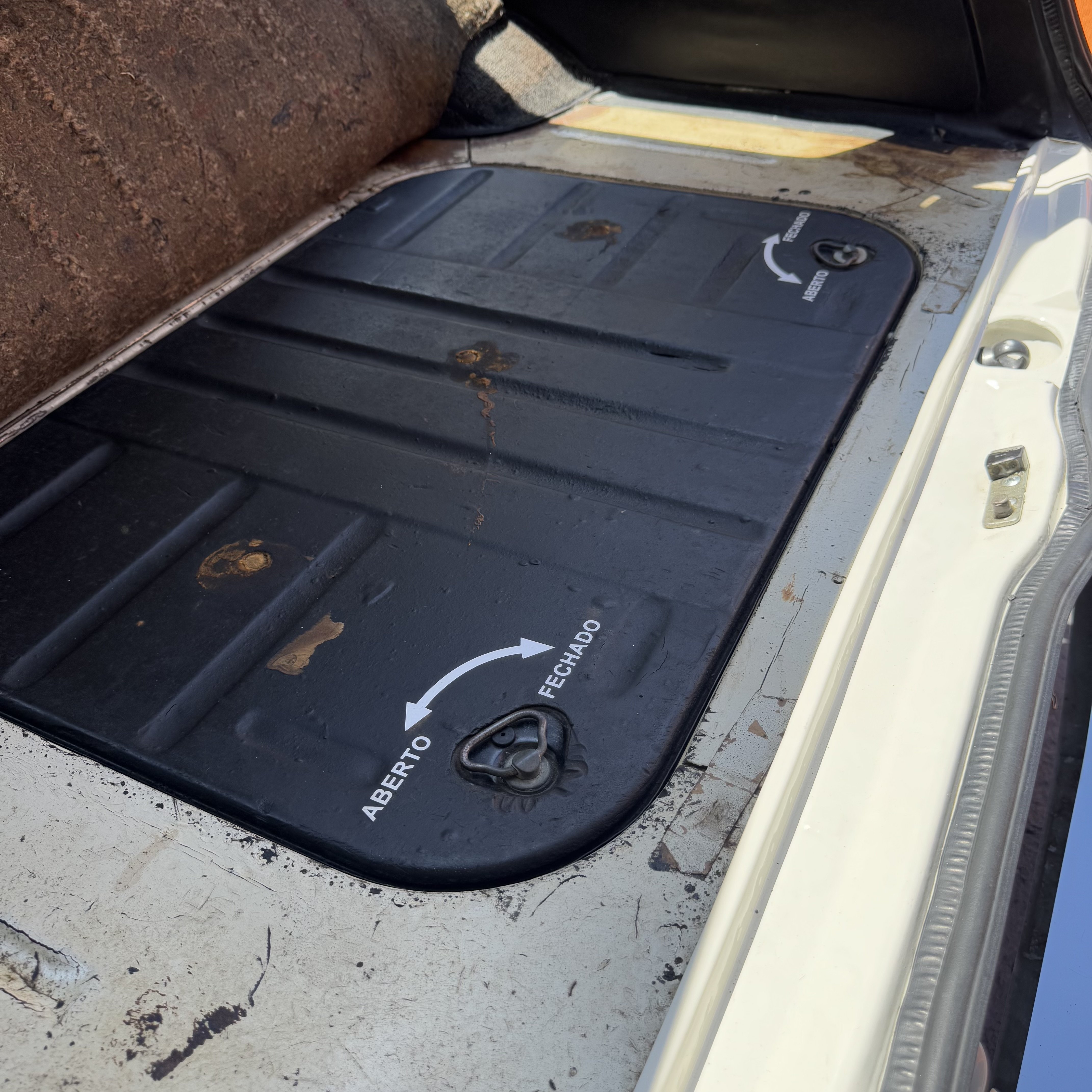 Carroceria perfeitamente alinhada, recebeu uma pintura somente na parte externa, porta malas ainda com Ziebart de época.